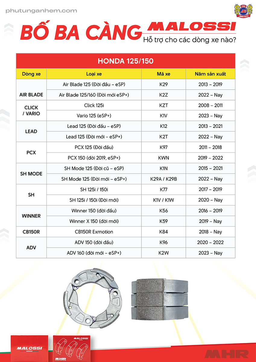 Bố 3 Càng Cho Xe Tay Ga – Lựa Chọn Chuẩn Hiệu Năng – Bảng Tra Cứu Dòng Xe Phù Hợp