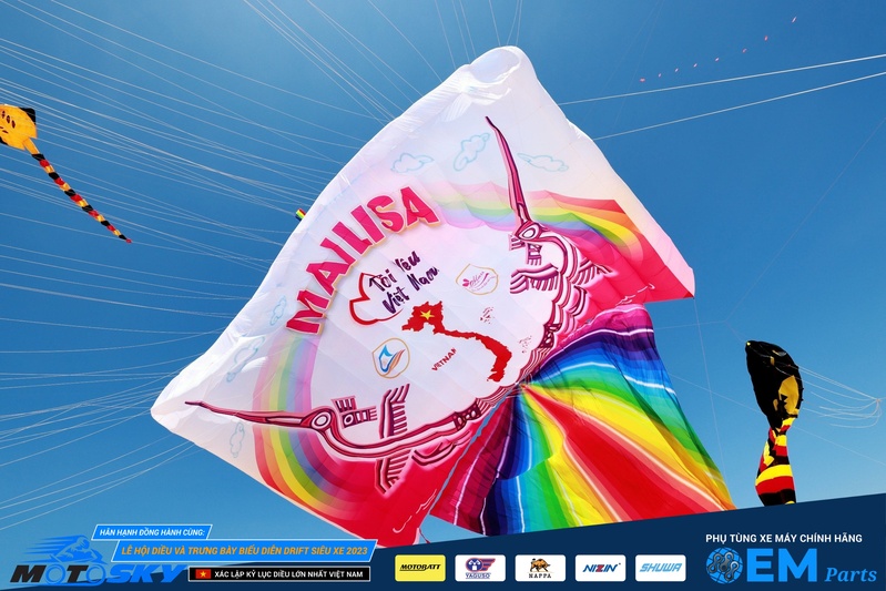Không chỉ dừng lại ở đó, một kỉ lục mới của Guinness được xác lập tại Bàu Trắng với diều lớn nhất Việt Nam. Được biết con diều khổng lồ có chiều dài và chiều rộng 23x38m, diện tích tổng hơn 800m2. Không chỉ ấn tượng mạnh mẽ bởi kích cỡ khổng lồ mà còn mang ý nghĩa nhân văn sâu sắc. Dòng chữ “Tôi Yêu Việt Nam” cùng bản đồ hình chữ S đỏ chót thể hiện tình yêu nước vô bờ. Chính vì thế mà con diều được xác lập kỷ lục Guinness là con diều lớn nhất Việt Nam.